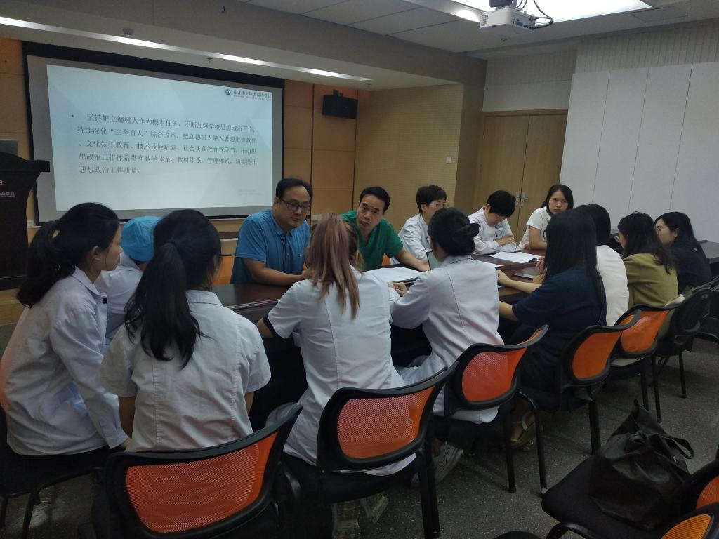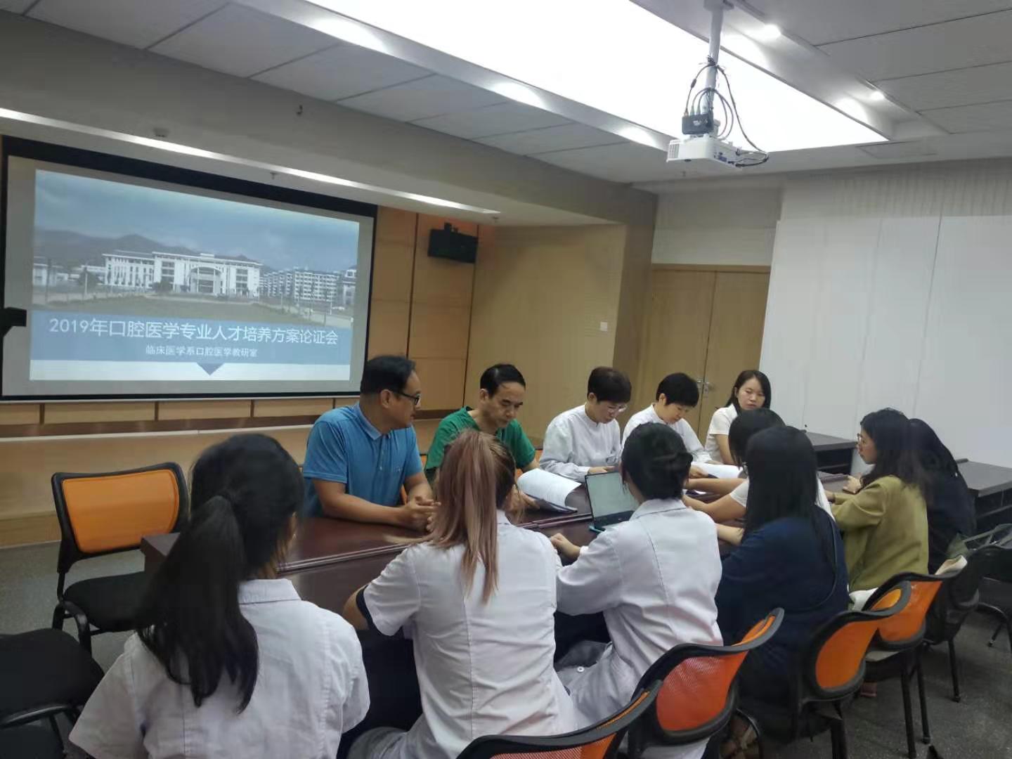 口腔醫(yī)學(xué)專業(yè)帶頭人馬清璇老師首先匯報了2019級口腔醫(yī)學(xué)專業(yè)人才培養(yǎng)方案制定情況及口腔醫(yī)學(xué)專業(yè)建設(shè)情況、招生情況。口腔醫(yī)學(xué)專業(yè)指導(dǎo)委員會各位成員委員審議了新制定的口腔醫(yī)學(xué)專業(yè)人才方案,并著重討論了(1)口腔專業(yè)課程如何開展課程思政及融入點;(2)口腔醫(yī)學(xué)專業(yè)核心課程設(shè)置;(3)2019級口腔醫(yī)學(xué)專業(yè)實習(xí)計劃。潘在興副院長指出根據(jù)《關(guān)于加強和改進新形勢下高校思想政治工作的意見》精神,在人才培養(yǎng)方案制定中需體現(xiàn)全程育人和專業(yè)培養(yǎng)相融合。結(jié)合學(xué)生和專業(yè)實際,注重把愛國主義、民族情懷、社會主義核心價值觀、醫(yī)德醫(yī)風(fēng)等貫穿滲透到專業(yè)課程教學(xué)中,培育學(xué)生求真務(wù)實、吃苦耐勞、精益求精的優(yōu)秀品質(zhì);在專業(yè)建設(shè)上各位專業(yè)指導(dǎo)委員會成員一致認為要依據(jù)教育部頒布的高等職業(yè)學(xué)??谇会t(yī)學(xué)專業(yè)教學(xué)標(biāo)準開展,學(xué)生代表也紛紛為口腔專業(yè)人才培養(yǎng)方案的修訂發(fā)表自己的看法,會議取得了圓滿成功。