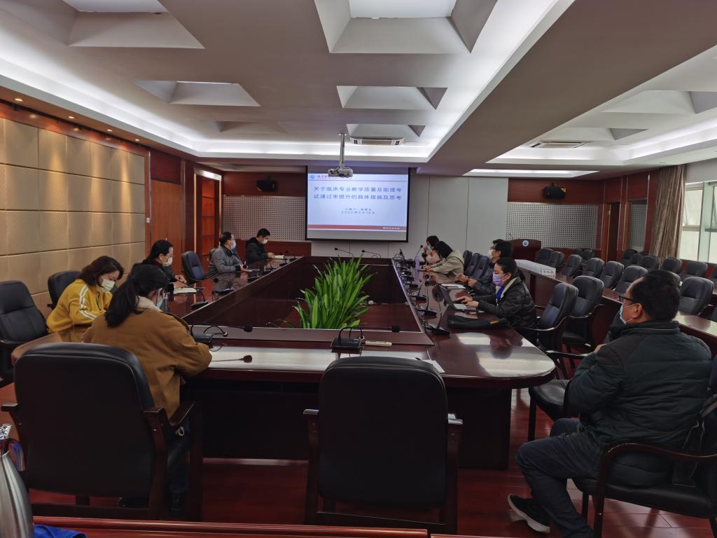 2020年3月16日上午在行政樓四樓會議室,臨床醫(yī)學系召開了2020年國控專業(yè)助理醫(yī)師執(zhí)業(yè)資格考試工作協(xié)調(diào)會,臨床系郭禮堅主任主持會議,學校鄭翠紅副校長、教務處朱扶蓉處長及臨床系陳俊穎副書記、各副主任、專業(yè)帶頭人等13人參加了會議。