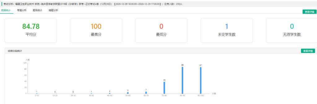 19級共230名考生參加聯(lián)考,《診斷學(xué)》平均分84.78,《外科學(xué)總論》平均分84.74。