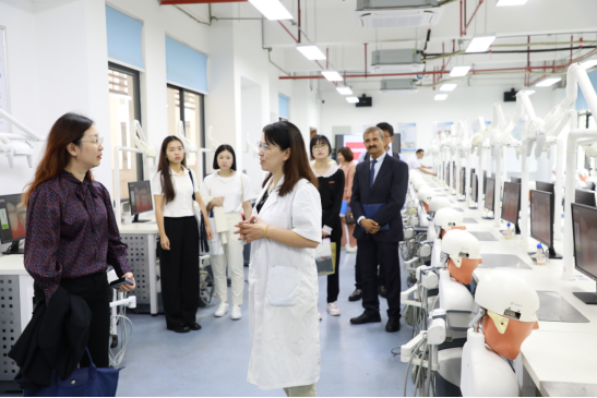 來(lái)訪期間,蔡寶珠一行在我校領(lǐng)導(dǎo)的陪同下參觀了醫(yī)學(xué)院現(xiàn)代康復(fù)實(shí)訓(xùn)中心、針灸推拿實(shí)訓(xùn)中心、口腔醫(yī)學(xué)專業(yè)實(shí)訓(xùn)中心。在參觀過(guò)程中,代表團(tuán)首先聽(tīng)取了醫(yī)學(xué)院對(duì)實(shí)訓(xùn)室建設(shè)情況的詳細(xì)介紹。醫(yī)學(xué)院詳細(xì)介紹了實(shí)訓(xùn)室的規(guī)模、設(shè)施配備以及在教學(xué)實(shí)踐中的應(yīng)用情況,并強(qiáng)調(diào)了實(shí)訓(xùn)室在培養(yǎng)學(xué)生實(shí)際操作能力和臨床技能方面的重要作用。同時(shí),也展示了近年來(lái)學(xué)院在實(shí)訓(xùn)室建設(shè)和醫(yī)學(xué)實(shí)踐教育方面所取得的成果。