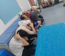 二是應(yīng)急逃生演練(消防、地震)。安全工作處林澤文老師詳細介紹消防器材使用、疏散信號、疏散路線、疏散順序等注意事項,并強調(diào)在疏散過程中切勿擁擠、推搡導(dǎo)致踩踏事件發(fā)生。演練工作組接到演練指令后,燃放煙霧,迅速開啟實訓(xùn)室的安全出口大門,組織學(xué)生彎腰、捂口鼻、無人喧嘩、迅速有序地撤出實訓(xùn)室,按照指定路線,從樓梯通道內(nèi)側(cè)撤離,到空曠位置集合并清點人數(shù)。