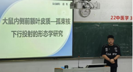 活動中,解剖教研室主任陳英標(biāo)老師就今年指導(dǎo)的項(xiàng)目《大鼠內(nèi)側(cè)前額葉皮質(zhì)——孤束核下行投射的形態(tài)學(xué)研究》做總結(jié)分享,他指出參賽同學(xué)在備賽過程要多參與實(shí)驗(yàn)操作、掌握實(shí)驗(yàn)的每個(gè)環(huán)節(jié)涉及的理論知識,同時(shí)團(tuán)隊(duì)比賽非??简?yàn)合作能力,組員之間多交流、積極參與每次的組會交流,培養(yǎng)團(tuán)隊(duì)默契,才能在比賽答辯環(huán)節(jié)取得更好的成績。