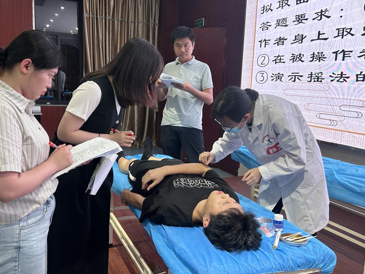 為全面提升中醫(yī)類專業(yè)學(xué)生的專業(yè)素養(yǎng)和臨床技能水平,5月7日晚,醫(yī)學(xué)院“尚醫(yī)”杯職業(yè)技能競賽暨學(xué)風(fēng)建設(shè)月系列活動之一的中醫(yī)適宜技術(shù)技能競賽順利舉行。本次大賽由醫(yī)學(xué)院教師第三黨支部、中醫(yī)教研室、針推教研室承辦,面向23、24級中醫(yī)學(xué)專業(yè)和針灸推拿專業(yè)學(xué)生。近百名同學(xué)參加初賽選拔,最后六支隊(duì)伍共18名同學(xué)進(jìn)入決賽。