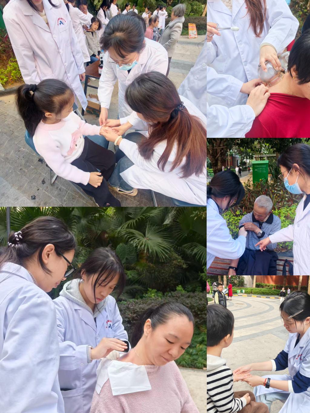 在黨員教師的指導(dǎo)下,“舒幼社”學(xué)生志愿者為社區(qū)居民提供了刮痧、拔罐、推拿(包括小兒推拿)等中醫(yī)特色服務(wù),幫助居民緩解身體不適,深受社區(qū)群眾歡迎。多位居民表示,通過親身體驗中醫(yī)外治技術(shù),不僅感受到傳統(tǒng)醫(yī)學(xué)的獨(dú)特魅力,也增強(qiáng)了日常自我保健意識。
