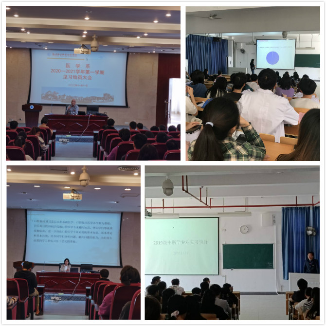 為促進(jìn)19級(jí)學(xué)生醫(yī)院見習(xí)工作的順利進(jìn)行,讓同學(xué)們對(duì)見習(xí)有更加深刻的了解,醫(yī)學(xué)系于11月11日中午分四個(gè)會(huì)場(chǎng)開展19級(jí)學(xué)生醫(yī)院見習(xí)動(dòng)員大會(huì),醫(yī)學(xué)系黨總支書記邱滾忠、臨床醫(yī)學(xué)專業(yè)王芳老師、針灸推拿張?zhí)N老師、口腔醫(yī)學(xué)馬清璇老師、中醫(yī)學(xué)陳銘老師、我系各輔導(dǎo)員及19級(jí)學(xué)生參加此次動(dòng)員大會(huì)。