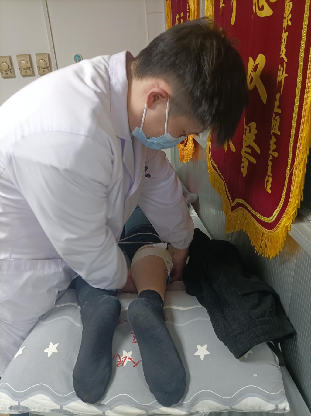 送錦旗的患者被腱鞘囊腫反復(fù)發(fā)作折磨一年余,同時伴有失眠、便秘,曾多方就醫(yī),治療效果均不明顯,遂至南平市人民醫(yī)院就診。治療期間,劉君鵬同學(xué)耐心疏導(dǎo)患者情緒,解釋病因病機,詳盡問診辨證論治。通過其細致嫻熟的針灸推拿手法,配合中藥治療,在短短一周后,患者可日行上萬步,同時睡眠、便秘問題也隨之解決。劉君鵬同學(xué)用仁心仁術(shù)幫助患者解決了困擾多時的難題,展現(xiàn)了閩衛(wèi)學(xué)子扎實過硬的專業(yè)能力和仁而愛人的醫(yī)者初心。