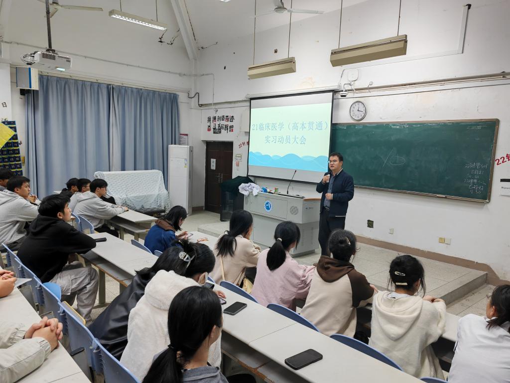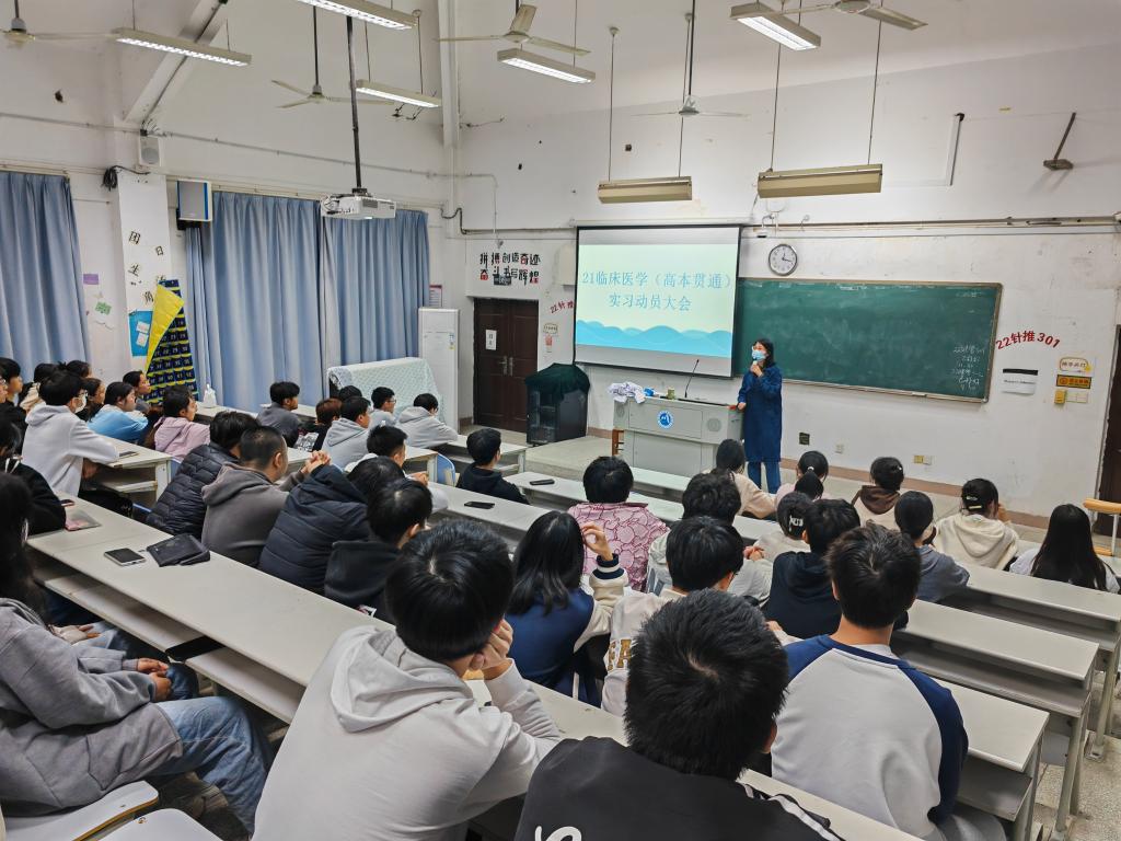 2023年11月30日下午,2021級(jí)臨床醫(yī)學(xué)(高本貫通)專業(yè)學(xué)生實(shí)習(xí)動(dòng)員在醫(yī)基二階開展,醫(yī)學(xué)院黨總支書記傅衍達(dá)、副院長(zhǎng)(主持工作)鄧元榮、臨床醫(yī)學(xué)專業(yè)負(fù)責(zé)人王芳、輔導(dǎo)員劉明鑫及21級(jí)臨床醫(yī)學(xué)(高本貫通)專業(yè)共57名學(xué)生參加了此次動(dòng)員大會(huì)。
