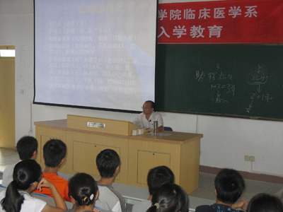學校的規(guī)章制度是校園安全的重要保障。9月3日下午,臨床醫(yī)學系黨總支書記蘇愛華向2008級臨床醫(yī)學專業(yè)全體新同學進行了入學教育。會上,蘇書記重點介紹了我校學生請假制度以及安全保衛(wèi)方面的相關規(guī)定,他用生動的語言、鮮活的案例,采用多媒體課件為同學們介紹了當前學校和學院周邊的治安狀況,對發(fā)生在學生中的一典型案例進行了分析,介紹了一些大學生應加強防范的方法。他關切地叮囑同學們,如果遇到困難可以向輔導員、兼職班主任或?qū)W校有關部門求助,老師們一定會竭盡全力幫助大家。蘇愛華書記的關心與囑咐讓新同學感受到臨床醫(yī)學系這個大家庭的溫馨與親切。