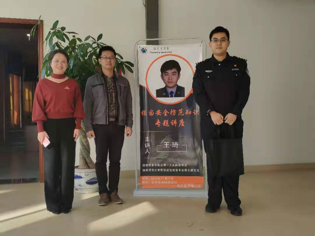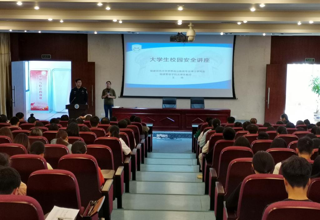 為進一步增強學(xué)生的法制觀念、安全意識,提高自我防范能力,由學(xué)工處主辦,臨床醫(yī)學(xué)系承辦的法律知識講座于11月21號下午在實訓(xùn)樓四樓報告廳舉行,此次講座邀請了臨床醫(yī)學(xué)系的共建單位——福建警察學(xué)院法律系一大隊副教導(dǎo)員王琦為我校學(xué)子講授“校園安全防范知識”。