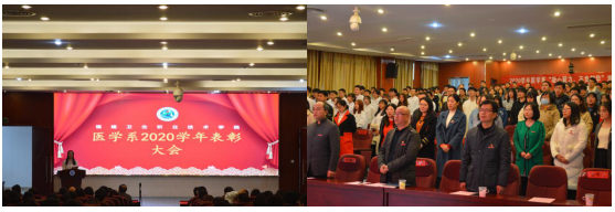 為表彰先進,樹立榜樣,更好地發(fā)揮示范群體的帶動和引領作用,我系于12月25日在實訓樓四樓報告廳舉行2020年“凝心聚力、不負韶華”表彰大會暨雙帶工作推進會。 校領導許能鋒院長,校黨政辦葉海主任,系黨總支書記邱滾忠、系黨總支副書記陳潔、系副主任陳銘,系副主任林浩、醫(yī)學系各專業(yè)帶頭人、教研室主任、全體黨員教師以及各班學生代表和團學工作人員參加本次表彰大會。大會以鼓勵先進、樹立典型、凝聚人心、鼓舞士氣為目的,以弘揚人文精神、激勵有志青年為準則,為我系若干名骨干教師及獲優(yōu)學生頒發(fā)了榮譽證書。