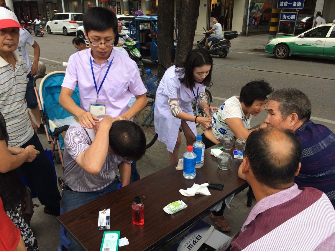 活動現(xiàn)場,科普志愿者在老師的幫助下積極地掛橫幅、布置場地、準備器材等準備工作,以極大的熱情對待每個來咨詢和檢查的市民。當天活動中義診的項目有測血壓,刮痧,推拿按摩,測血型。老師們也用淵博的知識加入到解答市民疑問的活動中來。市民們對我們的義診紛紛表示活動很不錯,真正的幫助到他們了解自身身體狀況。此次的科普義診的活動讓同學們受到了鍛煉,在投身實踐、服務社會中提高自身素質(zhì)和專業(yè)素養(yǎng),同時也展現(xiàn)了我院青年學生的良好風貌。