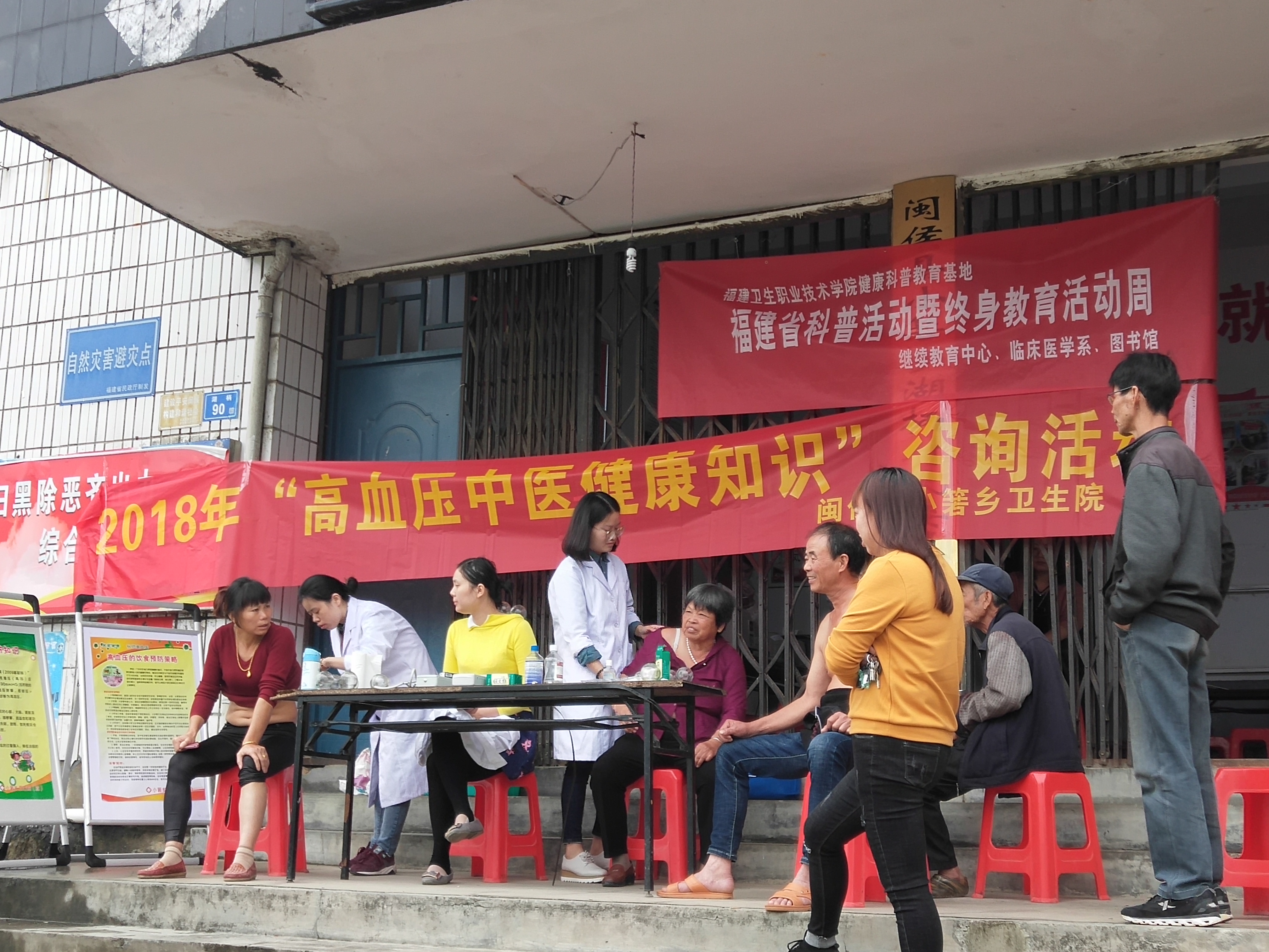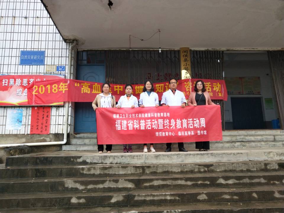 為響應(yīng)“全民終身教育活動(dòng)周”號(hào)召,迎接第21個(gè)全國高血壓日,做好高血壓等醫(yī)學(xué)知識(shí)科普工作,10月15日,繼續(xù)教育中心、臨床醫(yī)學(xué)系、圖書館組織了“科普進(jìn)鄉(xiāng)村”高血壓義診活動(dòng),旨在通過此項(xiàng)活動(dòng)提高人們對(duì)高血壓危害的認(rèn)識(shí),增強(qiáng)對(duì)高血壓病及其并發(fā)癥的防范意識(shí)。本次義診活動(dòng)地點(diǎn)設(shè)在福州閩侯縣小箬鄉(xiāng)湖柄村的小箬鄉(xiāng)衛(wèi)生院,閩侯縣科學(xué)技術(shù)協(xié)會(huì)主席潘桂光、臨床醫(yī)學(xué)林國威副主任、圖書館副館長張麗萍、吳艷芳、王雯婷、梁晨老師參加了本次活動(dòng)。