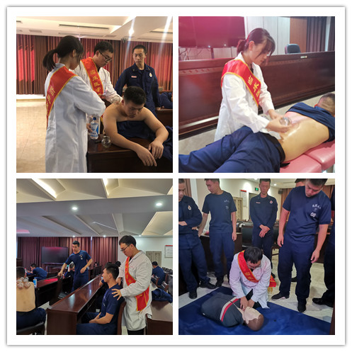 活動(dòng)伊始,蔡老師為10余名消防隊(duì)員詳細(xì)地講解了心肺復(fù)蘇術(shù)的重要性和具體的操作要領(lǐng),隨后由康樂工作室負(fù)責(zé)人莊俊榮同學(xué)進(jìn)行現(xiàn)場(chǎng)演示。現(xiàn)場(chǎng)消防員們表示了極大的興趣,并積極踴躍的進(jìn)行練習(xí)。接著,針對(duì)消防員訓(xùn)練過程中常見的運(yùn)動(dòng)損傷,蔡老師與康樂工作室的同學(xué)們還為他們提供了針灸、推拿、拔罐等中醫(yī)特色義診活動(dòng),受到了他們的好評(píng)和歡迎。