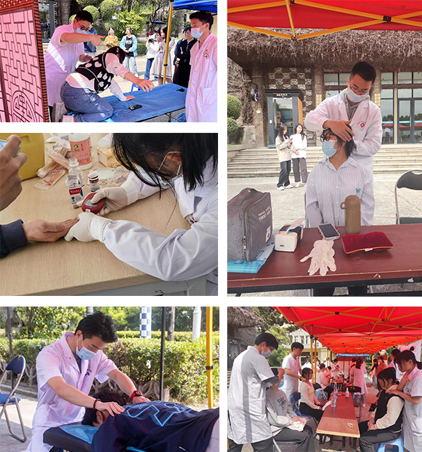 本次活動(dòng)分三個(gè)場(chǎng)次進(jìn)行。3月4日,在福州金山榕城廣場(chǎng),黨員教師組織了57名校紅十字會(huì)學(xué)生會(huì)員,以“學(xué)習(xí)黨的二十大、青春志愿行”為主題開展學(xué)雷鋒為民辦實(shí)事服務(wù),現(xiàn)場(chǎng)提供醫(yī)療義診、體能測(cè)試、食品藥品衛(wèi)生安全、健康知識(shí)宣傳等惠民便民服務(wù)。3月11日和3月18日,黨員教師帶領(lǐng)學(xué)??到【銟凡砍蓡T前往福建幼兒師范高等??茖W(xué)校和福建省農(nóng)業(yè)職業(yè)技術(shù)學(xué)院進(jìn)行義診活動(dòng),為兩所院校師生提供體態(tài)評(píng)估、脊柱健康科普及疼痛管理、健康檢測(cè)等服務(wù)。