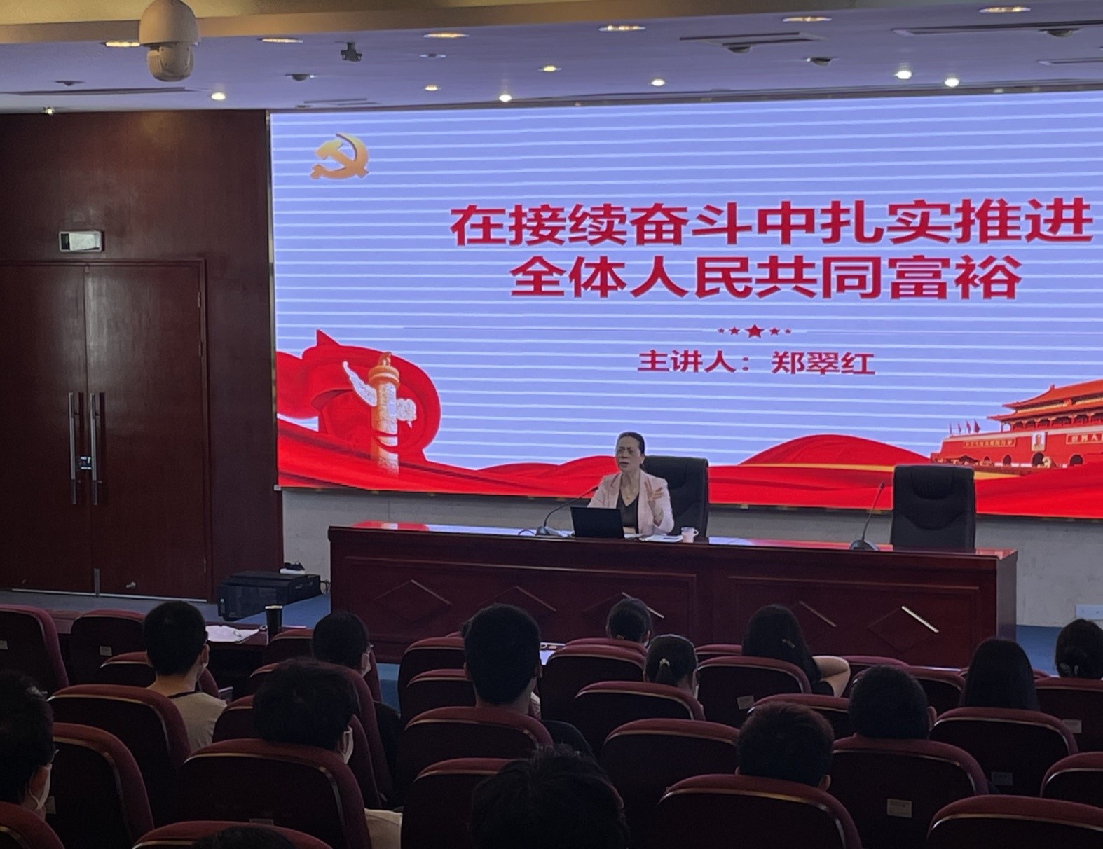 課上,鄭翠紅從“理解共同富裕的科學內(nèi)涵”、“把握共同富裕的實踐途徑”、“認清共同富裕的未來”三大方面,結(jié)合學?!笆濉苯ㄔO(shè)成果及“十四五”規(guī)劃藍圖,向師生詳細闡釋了習近平總書記關(guān)于共同富裕的系列重要論述, 進一步激勵青年學生深刻認識肩負的歷史重任,實踐共同富裕發(fā)展理念,積極投身學校的高質(zhì)量發(fā)展。