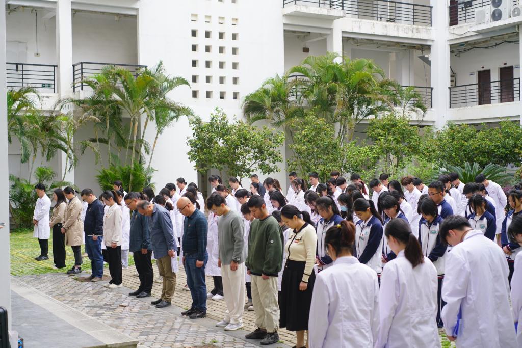 許能鋒發(fā)表講話,對同學們提出三點期望:一是心懷仁愛,傳續(xù)大體老師的大愛精神,做一名有大愛的醫(yī)務工作者;二是學史明理,不斷堅定理想信念,把紅色基因融入血脈,做一名有理想的醫(yī)務工作者;三是勇于擔當,堅韌不拔,篤志好學,牢記“健康所系,性命相托”的誓言,潛心投身醫(yī)藥衛(wèi)生和健康事業(yè),做一名有擔當的醫(yī)務工作者。