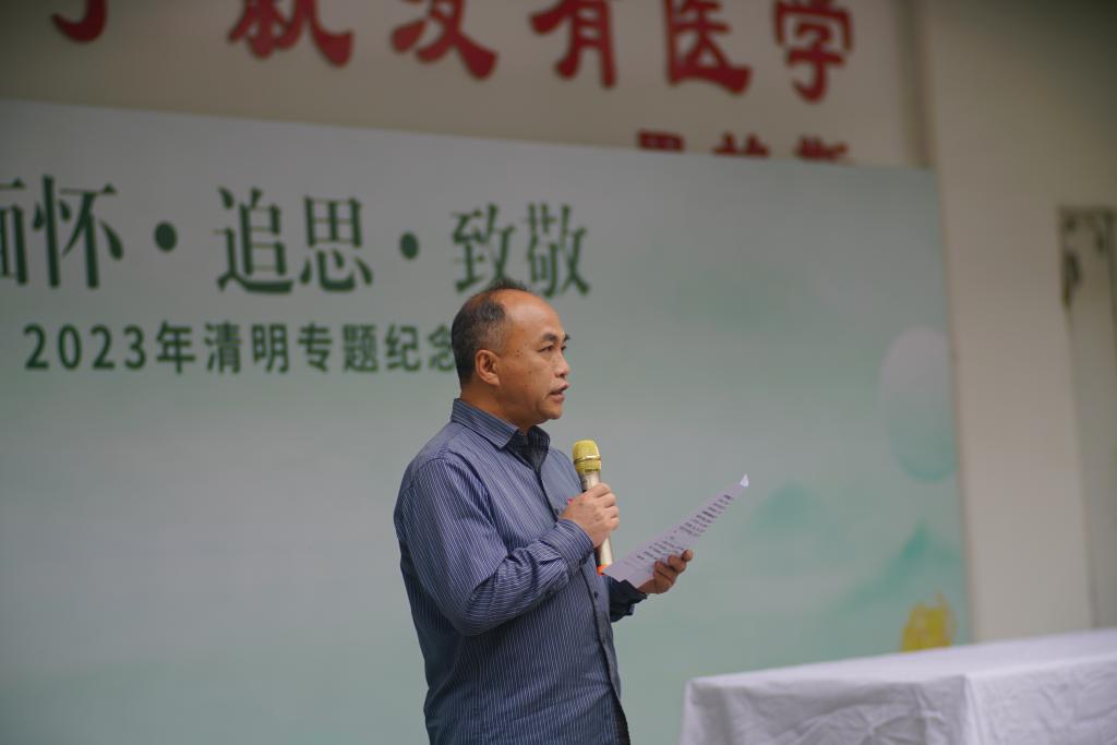 4月4日,我校舉辦以“緬懷?追思?致敬”為主題的2023年師生清明追思專題紀念活動?;顒佑尚F委、醫(yī)學院主辦,醫(yī)學院教師第二黨支部、醫(yī)學院團總支、解剖教研室、校健康科普青年講團承辦。校長許能鋒、校團委書記林桂松、醫(yī)學院黨政領導班子及師生代表參加此次活動,閩侯縣青少年宮、閩侯縣職業(yè)中專學校師生代表受邀出席活動,活動由醫(yī)學院教師第二黨支部入黨積極分子林玉瓊老師主持。