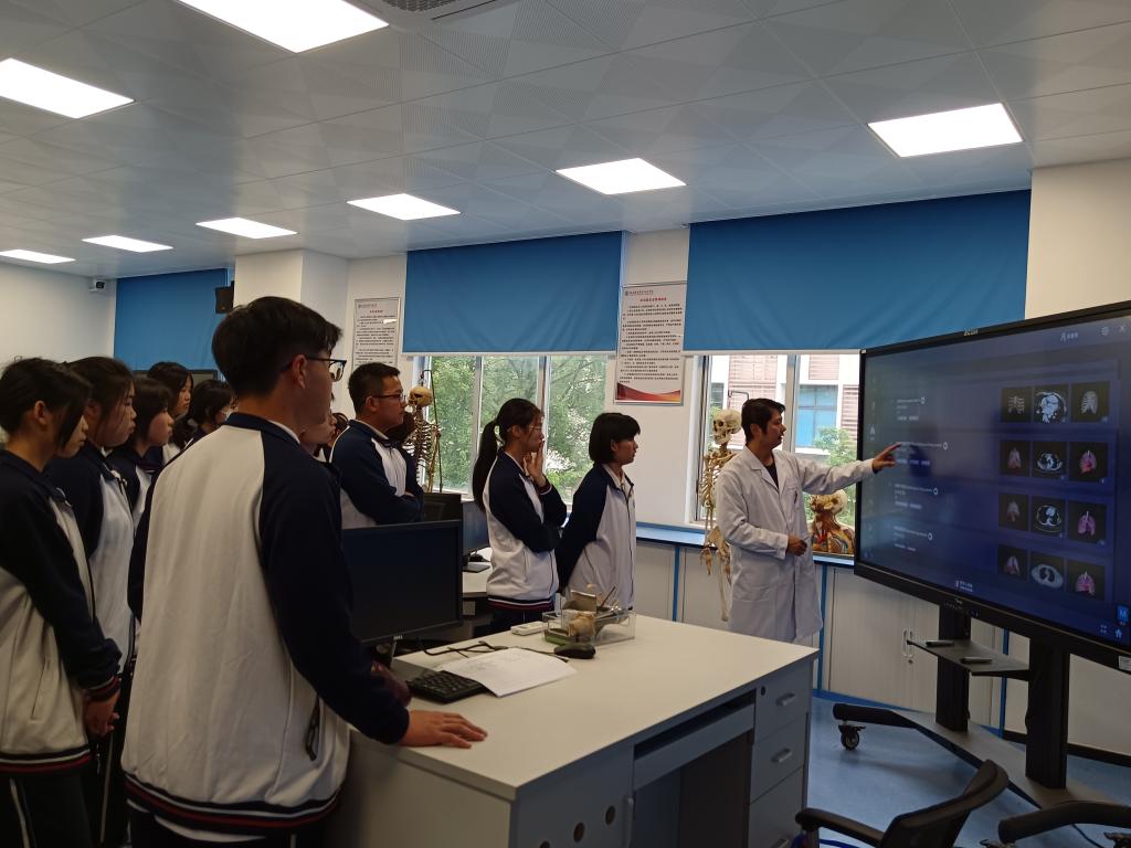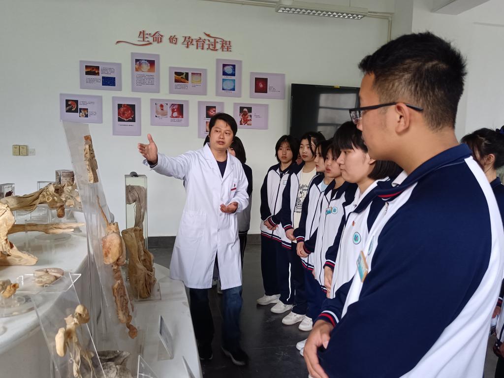 活動后,部分學生及閩侯縣職業(yè)中專學校師生代表參觀了解剖實訓室。醫(yī)學院教師第二黨支部支委林加福老師作為志愿者引導講解形態(tài)學館標本,帶學生體驗使用示教儀、數字人軟件。學生們被多樣化的輔助教學信息化技術深深吸引。林加福鼓勵閩侯職專學生努力學習,歡迎大家今后報考我校繼續(xù)學習。