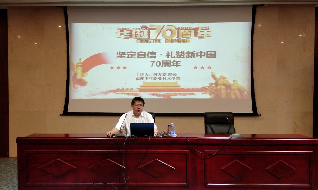 2019年9月5日下午,蘇友新院長(zhǎng)在實(shí)訓(xùn)樓報(bào)告廳以“堅(jiān)定自信,禮贊新中國(guó)70周年”為主題,為我系18級(jí)200多名學(xué)生講授了一堂受益匪淺的形勢(shì)與政策課。臨床醫(yī)學(xué)系黨總支負(fù)責(zé)人陳俊穎、陳潔副書記以及部分老師共同到場(chǎng)聆聽學(xué)習(xí)此次講座。