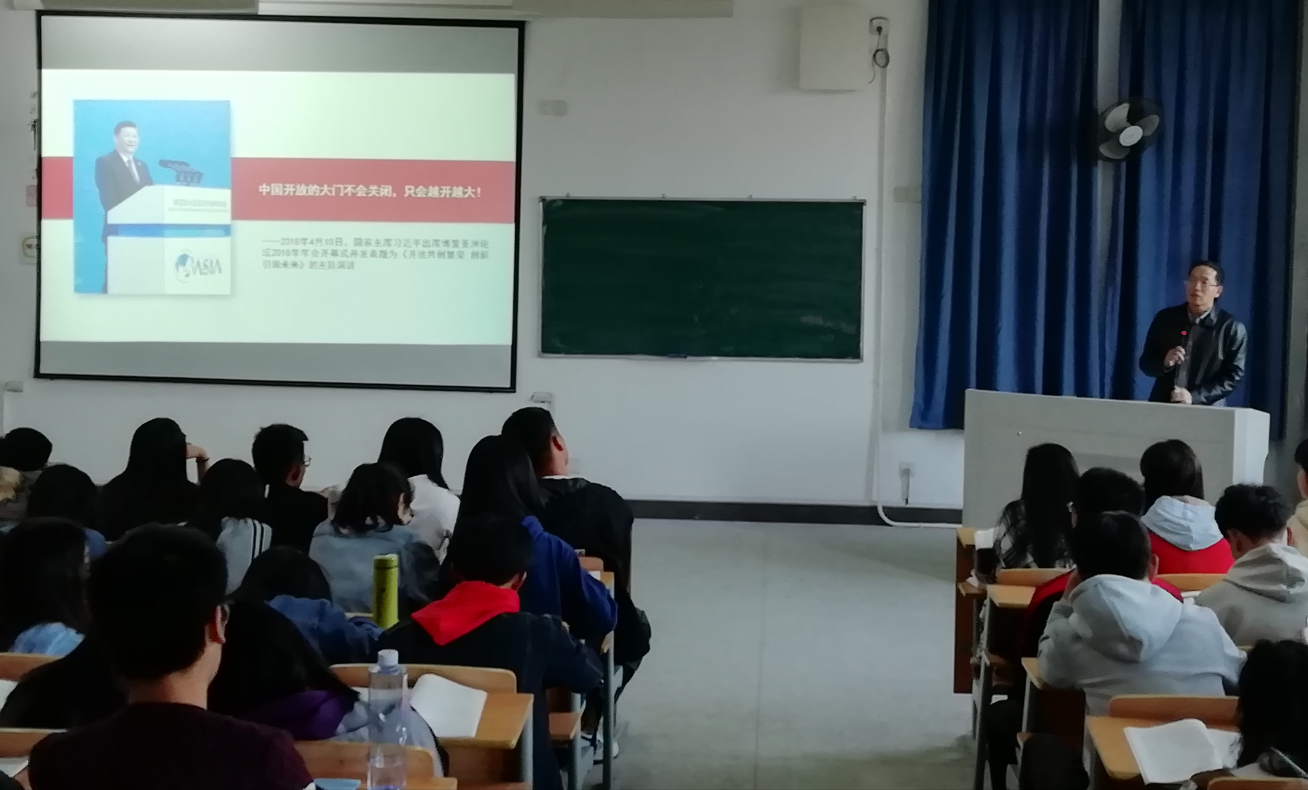 郭禮堅(jiān)書記從GDP、鐵路運(yùn)營、產(chǎn)業(yè)結(jié)構(gòu)三個(gè)角度講述了改革開放和平發(fā)展的變化,引出“改變中國 影響世界”主題,并以中美貿(mào)易戰(zhàn)、“一帶一路”建設(shè)為主線,對只有改革開放才能發(fā)展中國、改革開放40年成就輝煌、將改革開放進(jìn)行到底三個(gè)方面進(jìn)行了具體而生動(dòng)的講解。