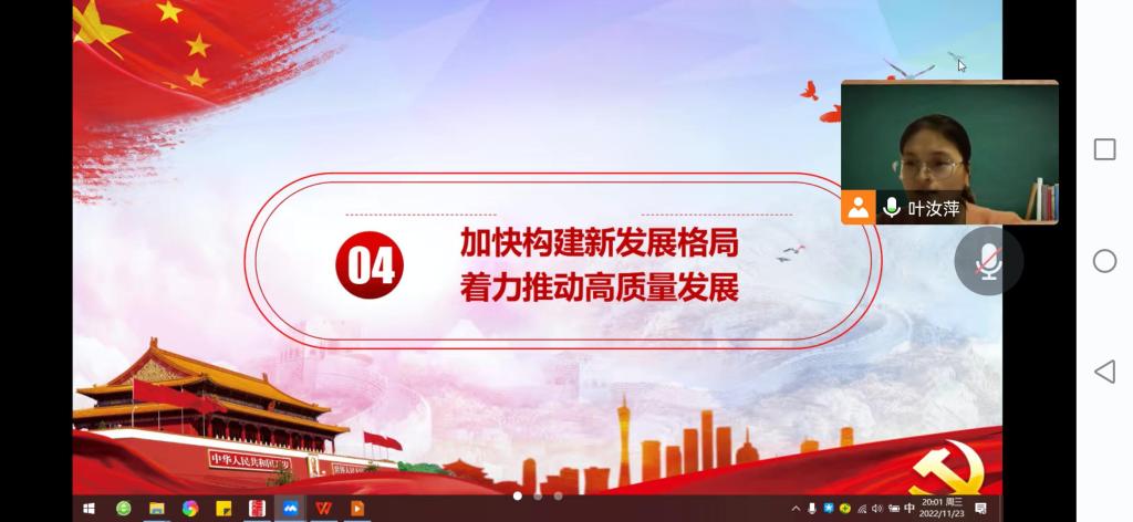 陳銘表示,我們要認(rèn)真學(xué)習(xí)貫徹好黨的二十大精神,必須堅(jiān)持系統(tǒng)觀念,深刻理解加快構(gòu)建新發(fā)展格局與著力推動(dòng)高質(zhì)量發(fā)展的理論邏輯、歷史邏輯和實(shí)踐邏輯,認(rèn)真做好結(jié)合、銜接、聯(lián)動(dòng)、貫通四篇文章,將黨的二十大精神同學(xué)校的發(fā)展結(jié)合起來,并落實(shí)到教師教學(xué)中去。當(dāng)前,學(xué)校正處在雙高建設(shè)關(guān)鍵時(shí)期,教師要將高質(zhì)量發(fā)展理念貫穿教書育人全過程,做好課程思政建設(shè),為培育高素質(zhì)技術(shù)技能人才作出貢獻(xiàn)。支部黨員們一致認(rèn)同。全面建設(shè)社會(huì)主義現(xiàn)代化國家的任務(wù)偉大而艱巨,必須要全面貫徹新發(fā)展理念。要堅(jiān)持和加強(qiáng)黨的全面領(lǐng)導(dǎo),堅(jiān)持中國特色社會(huì)主義道路,堅(jiān)持以人民為中心的發(fā)展思想,堅(jiān)持深化改革開放,要堅(jiān)持系統(tǒng)觀念,統(tǒng)籌發(fā)展和安全,把新發(fā)展理念貫徹到經(jīng)濟(jì)社會(huì)發(fā)展全過程和各領(lǐng)域。